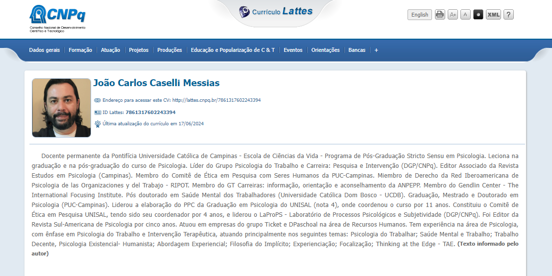 Verifique também outras credenciais disponíveis. Vou dar dois exemplos meus. O primeiro se refere à minha afiliação ao The International Focusing Institute, com sede em Nova Iorque. No meu cartão de visitas, você encontra essa informação e pode conferi-la em https://focusing.org/civicrm/profile/view?reset=1&id=254&gid=14. Além disso, muitos psicoterapeutas, como eu, são acadêmicos. Nesse caso, você pode conhecer um pouco mais sobre sua atuação via Currículo Lattes: https://lattes.cnpq.br/. Você localiza o meu em: http://lattes.cnpq.br/7861317602243394.